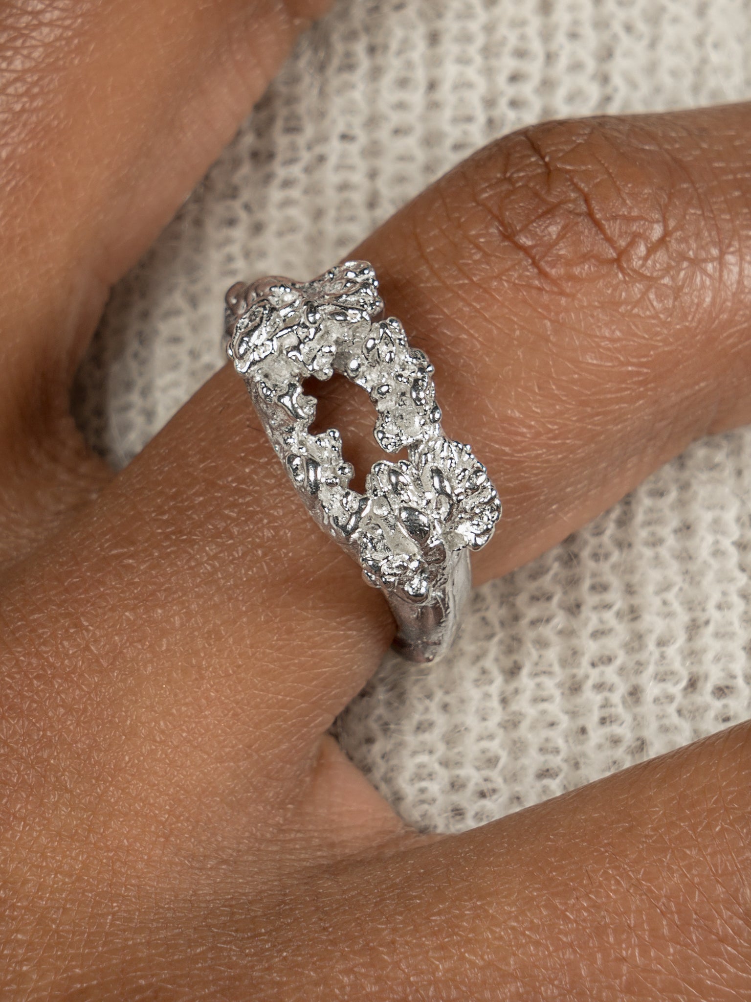 Handcrafted with floral foliage, The Glade ring radiates exquisite artistry. Showcasing nature's splendor, this showstopper piece is an essential part of any jewelry collection, easily adjustable to fit almost any finger.