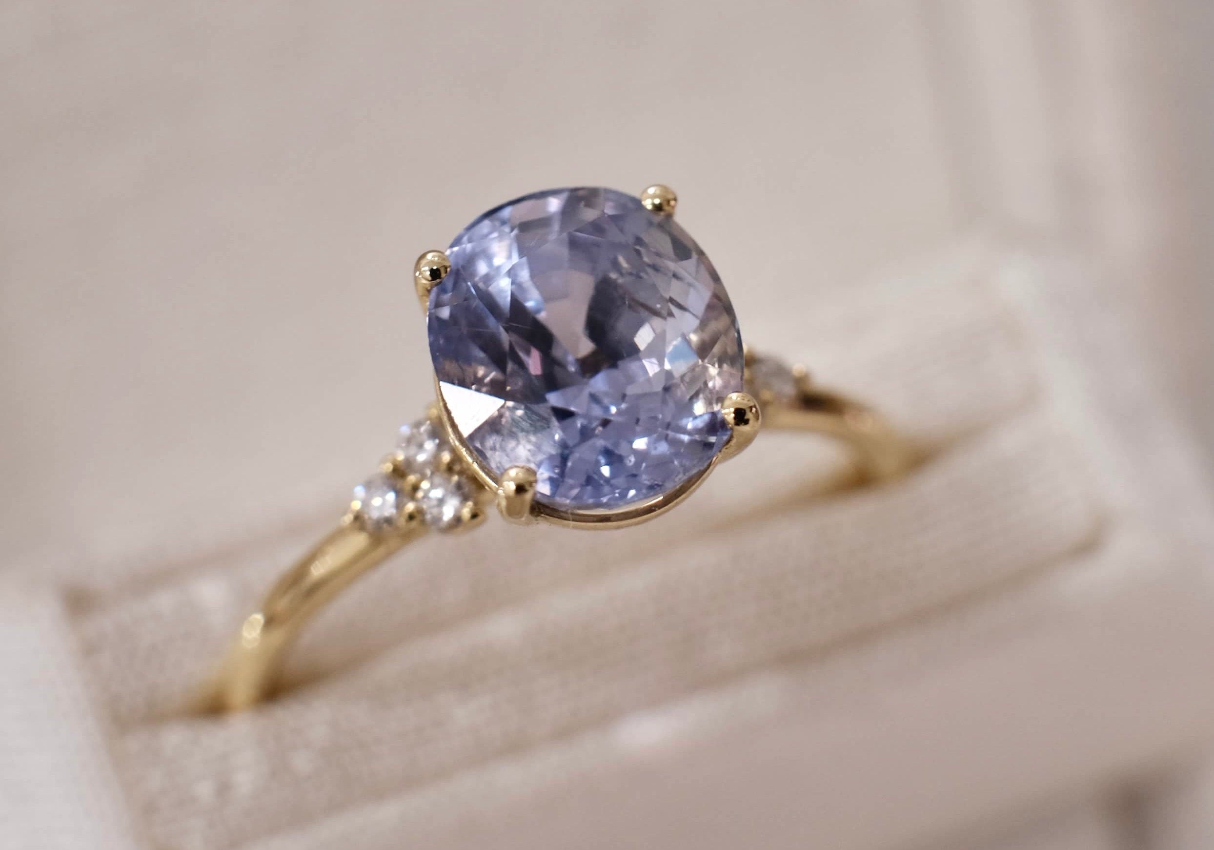 Oval Light Blue Sapphire 8x7 mm + 6 G-H | VS | Excellent Cut | Conflict- Free natural Diamonds