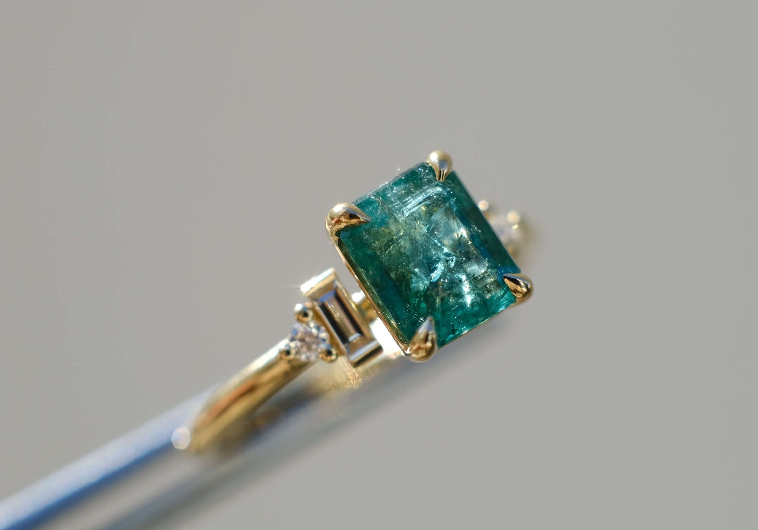 1.34ct Natural Emerald Zambia | no treatments + 0.02 ct. Round + 0.08ct. Baguette G-H | VS | Excellent Cut | Conflict- Free natural Diamonds