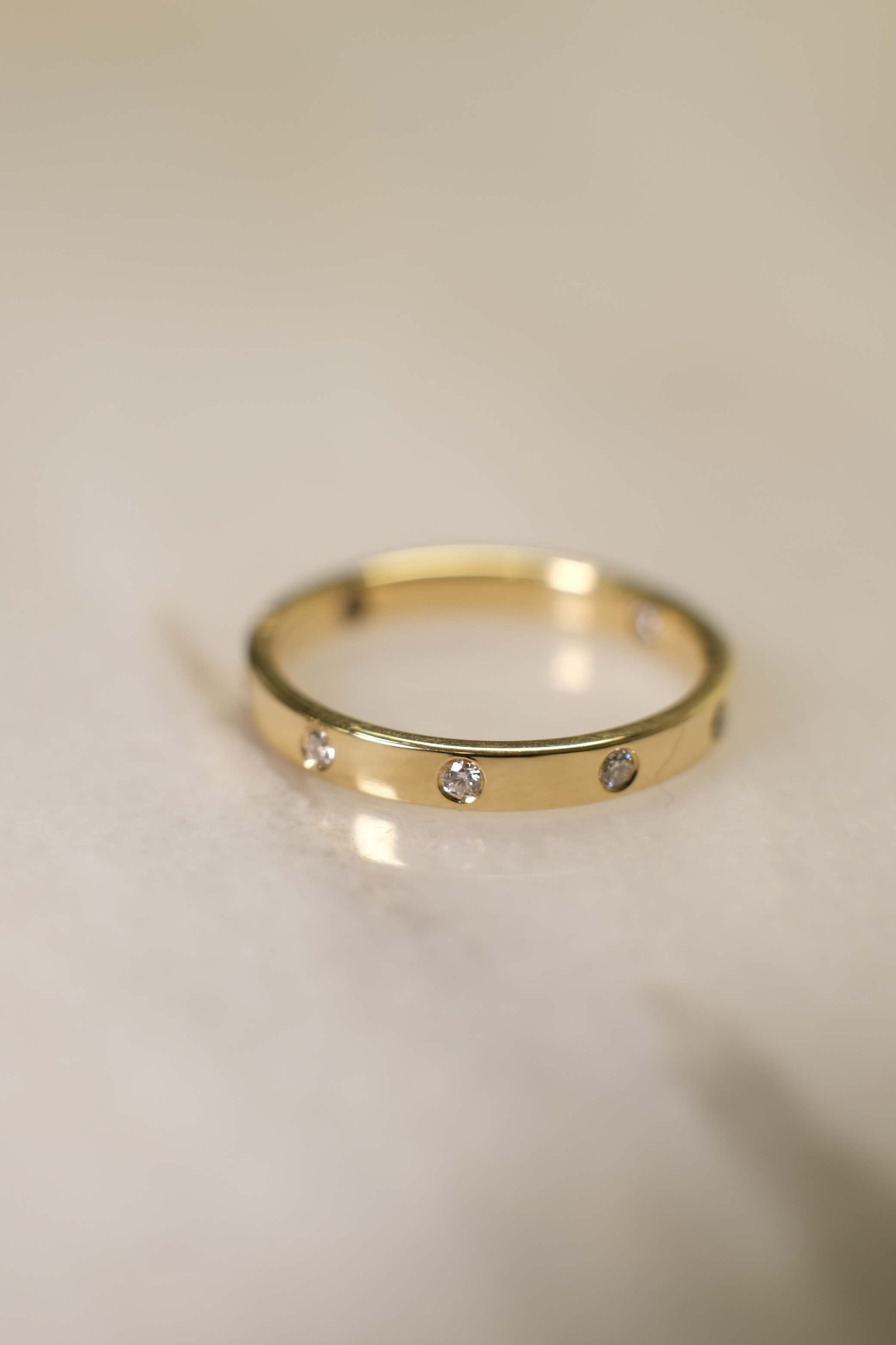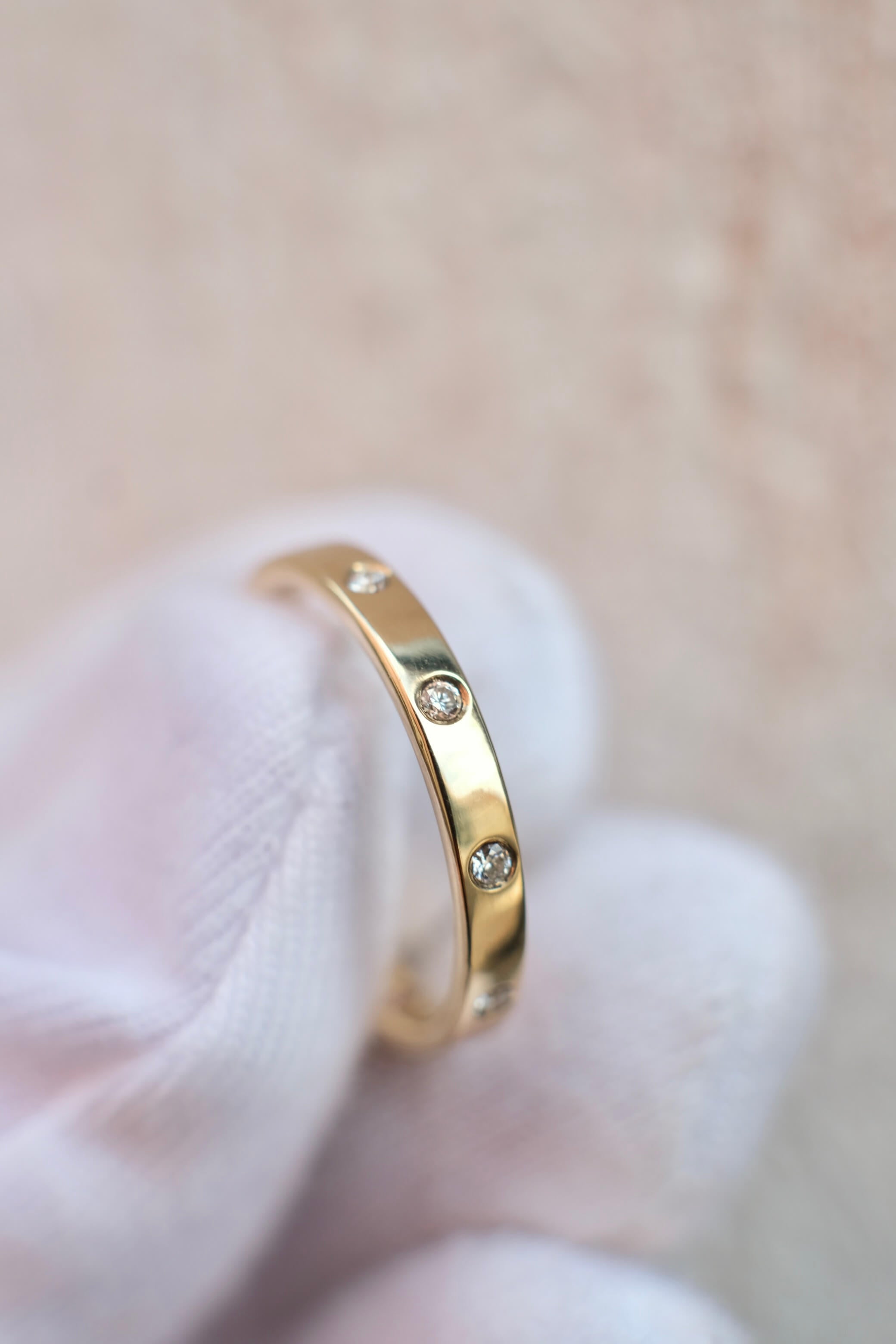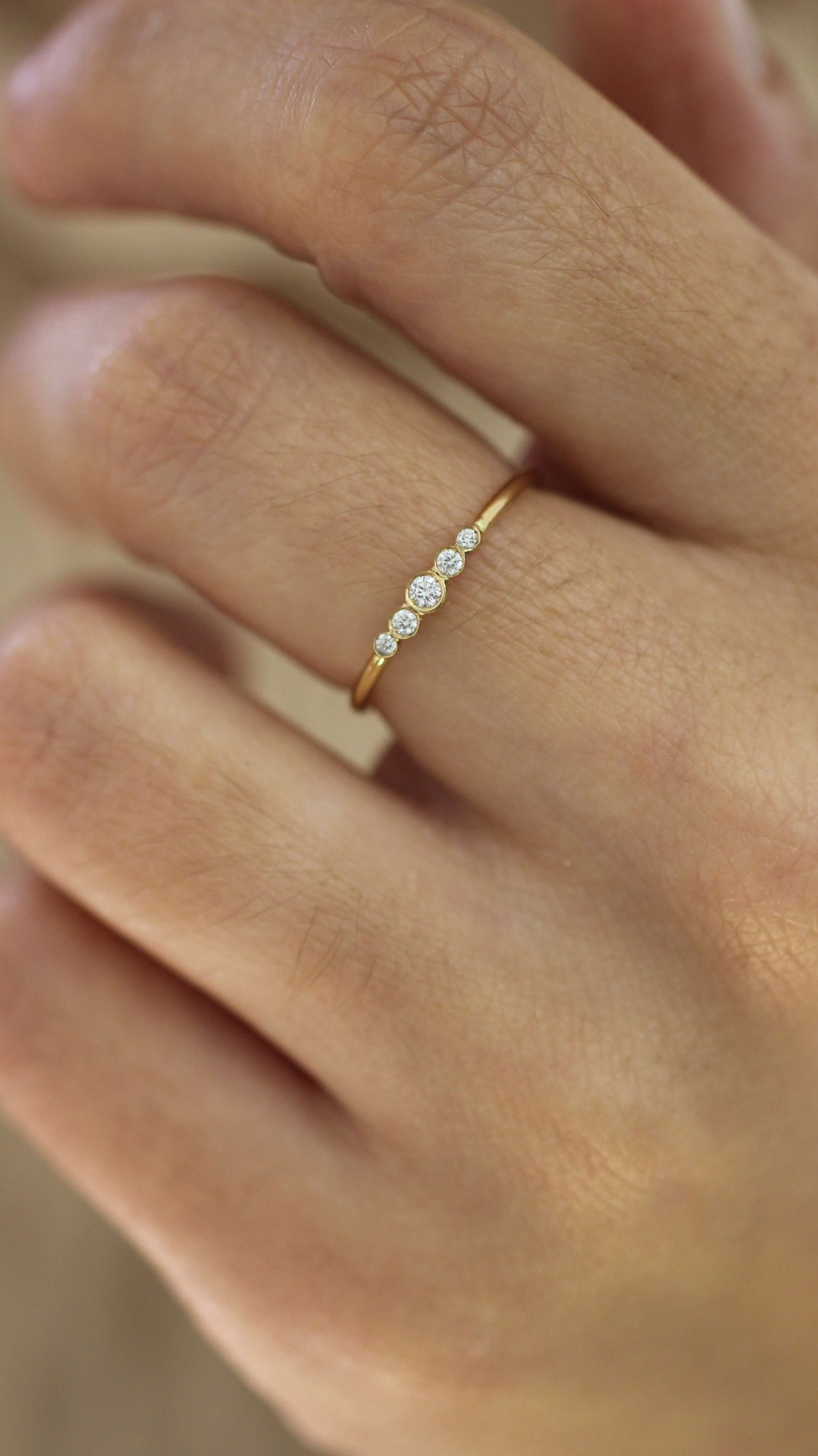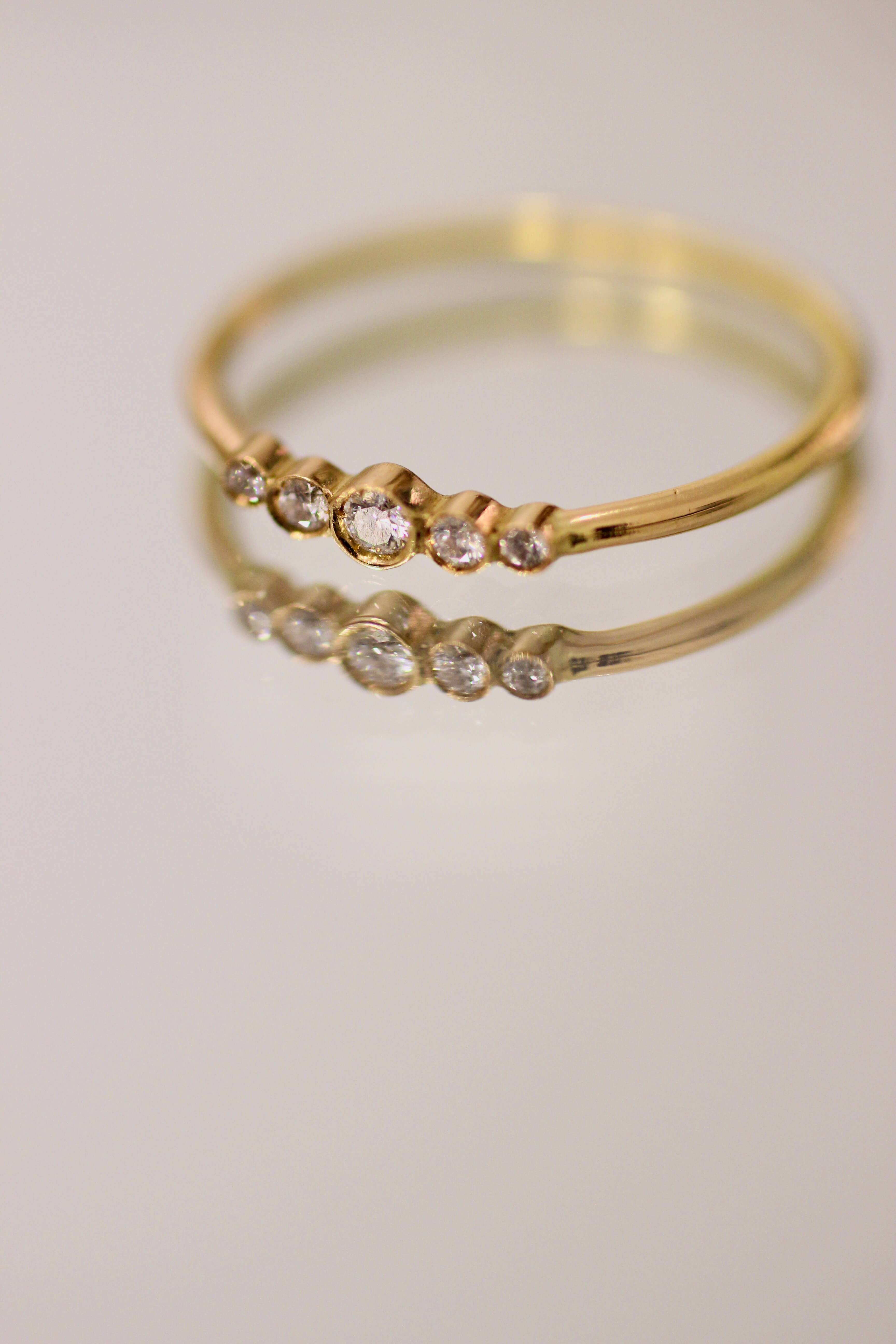 A delicate constellation of diamonds, each one bezel-set with care, resting gently on a slender band of 18k yellow gold. A cluster of light—organic, asymmetrical, and quietly brilliant. Created to be worn effortlessly, every day, as a second skin.