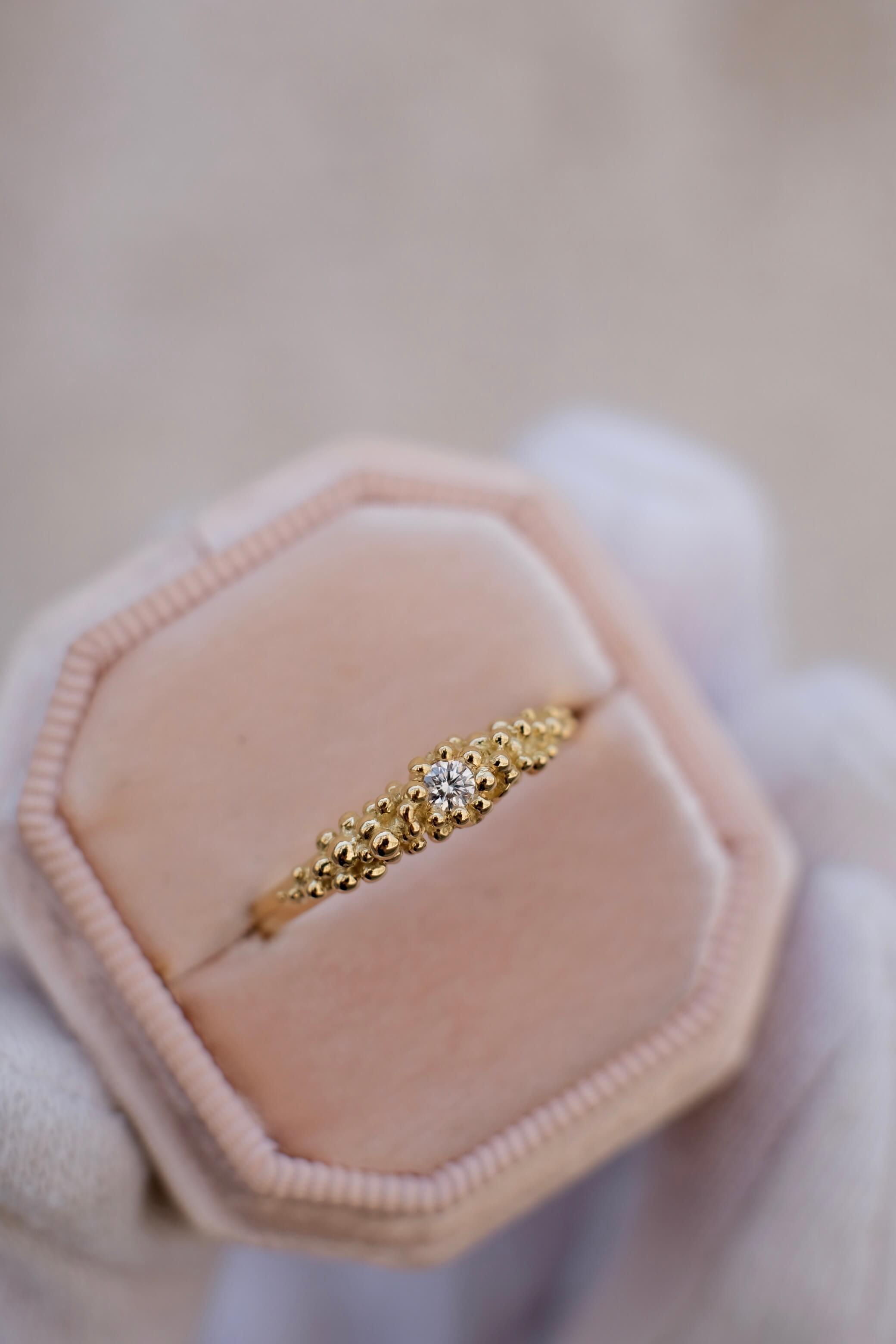 18k recycled Yellow gold Vintage looking Engagement ring