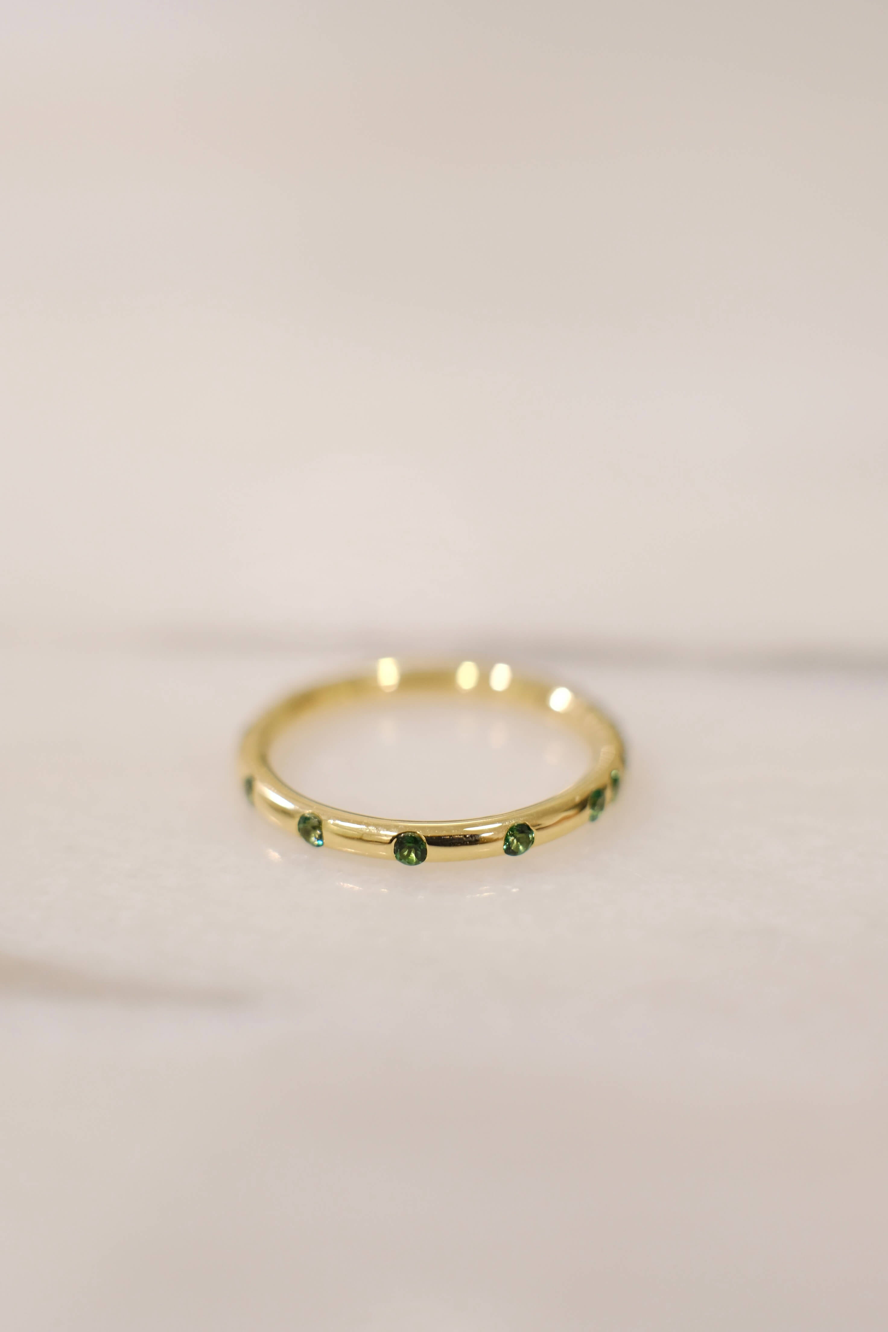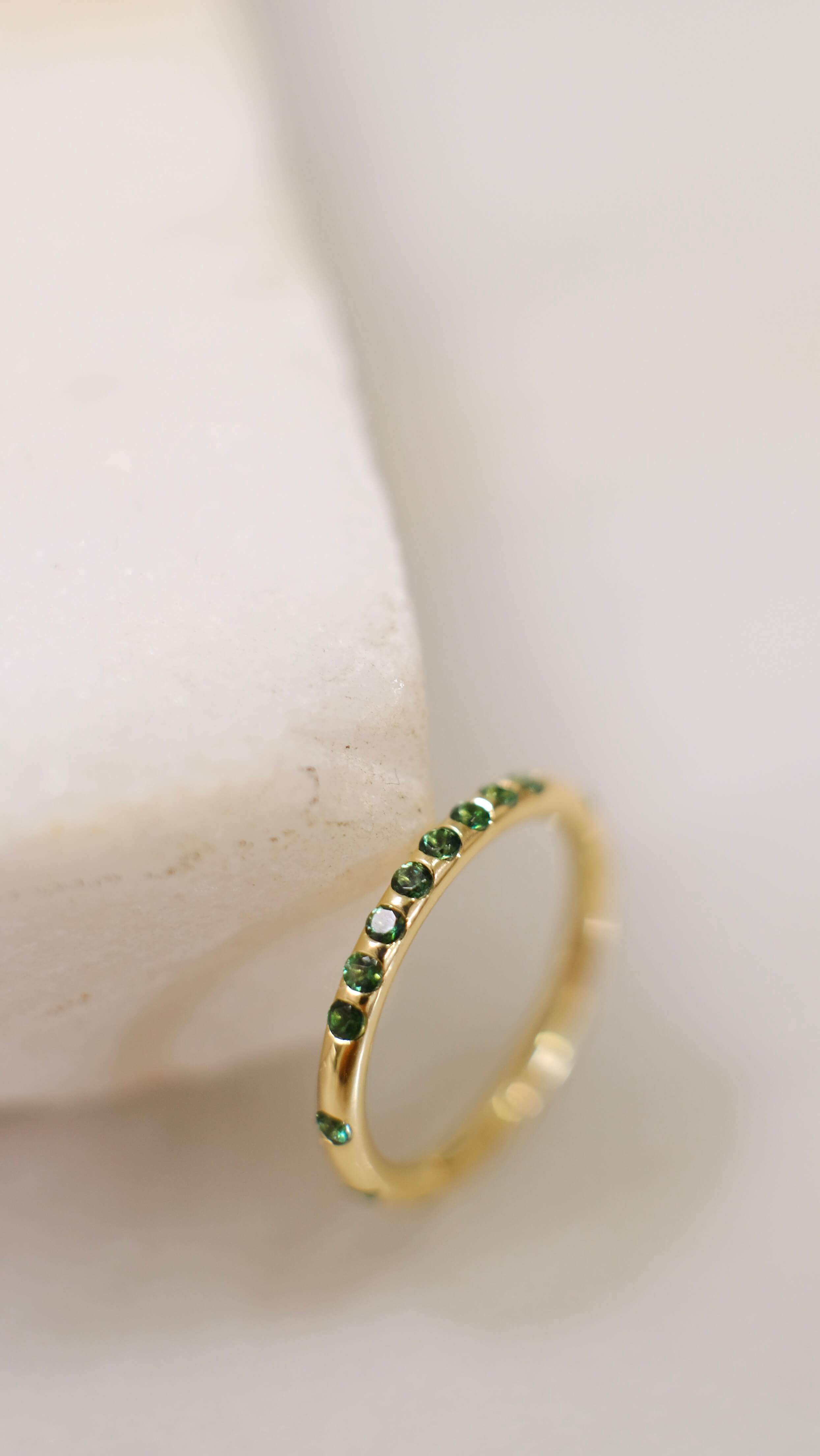 16* 1.5mm green Topaz set in a 1.6mm round band.