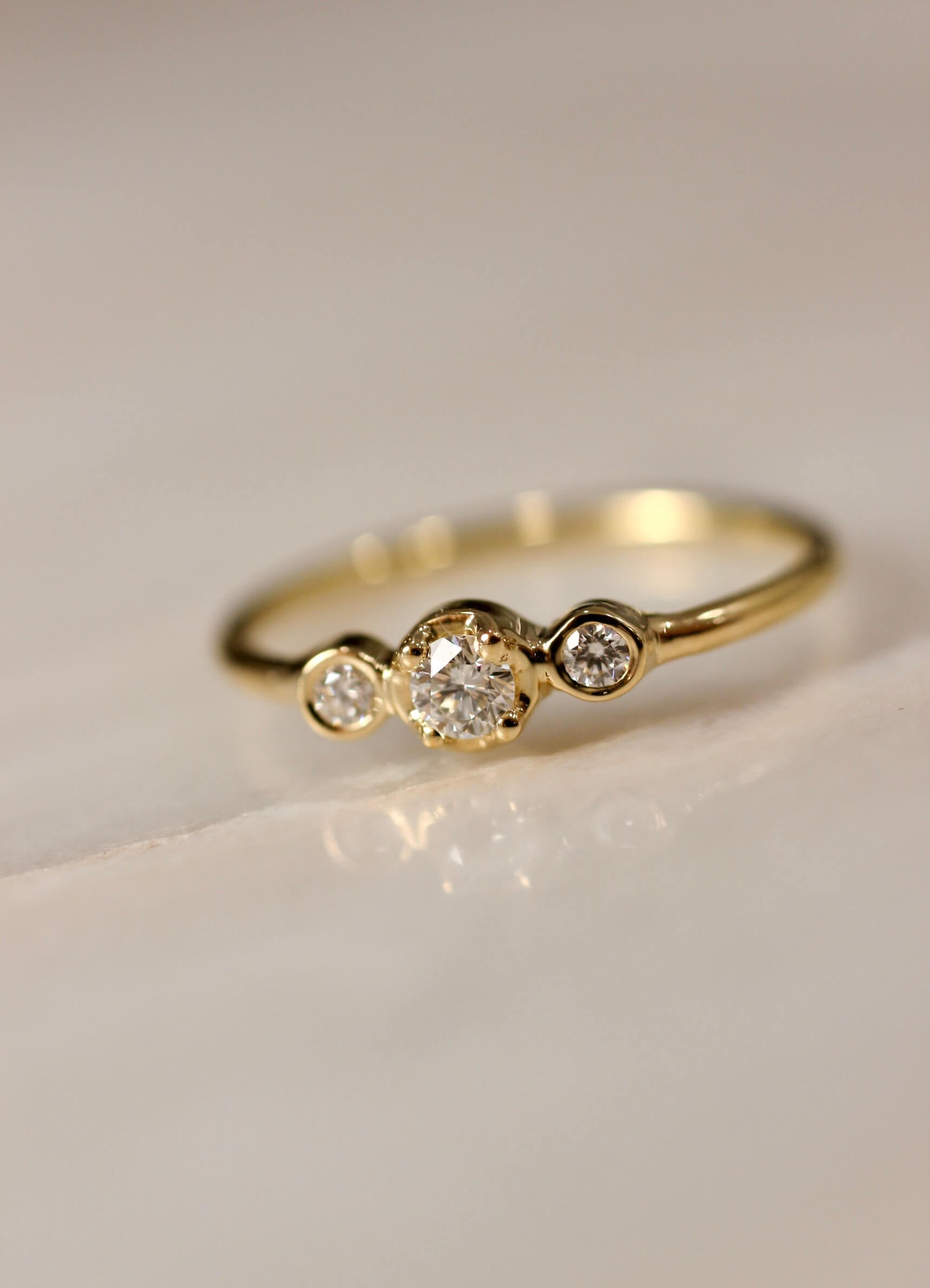 'Not so solitaire' 18k Yellow Gold Engagement Ring