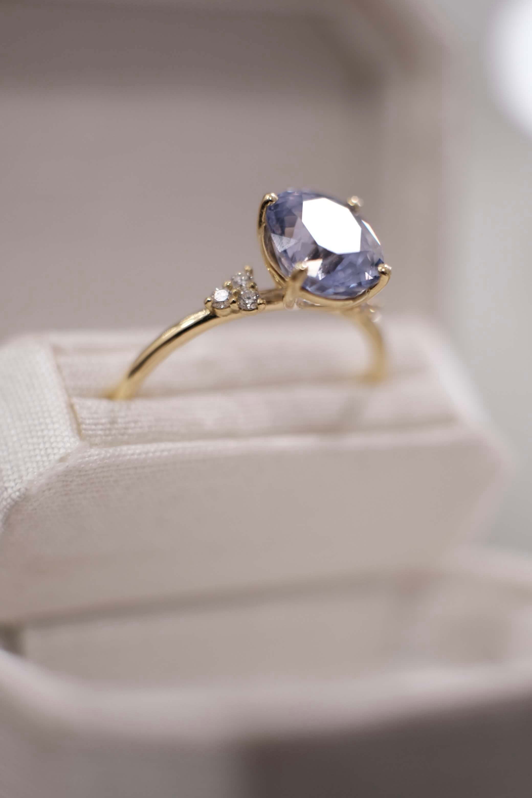 Lilac Blue 18k Yellow Gold Sapphire Engagement Ring