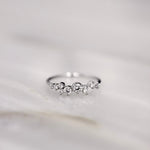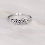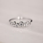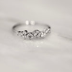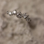 Our Cloud Diamonds Ring is crafted in 18K white Gold, with extreme delicacy and subtlety, nesting 9 majestic G-H, VSI, EXCELLENT Cut, conflict-free, natural Diamonds.