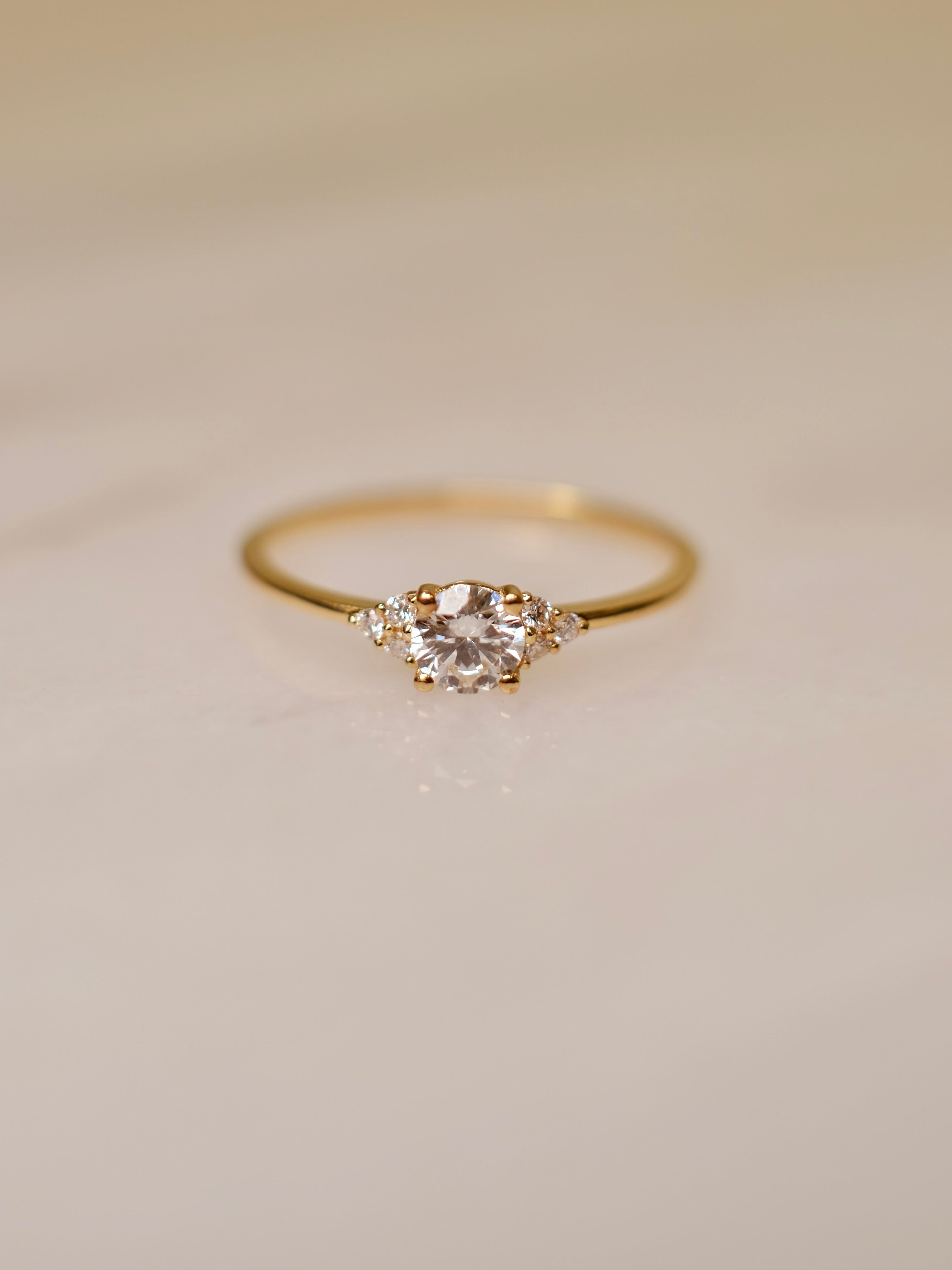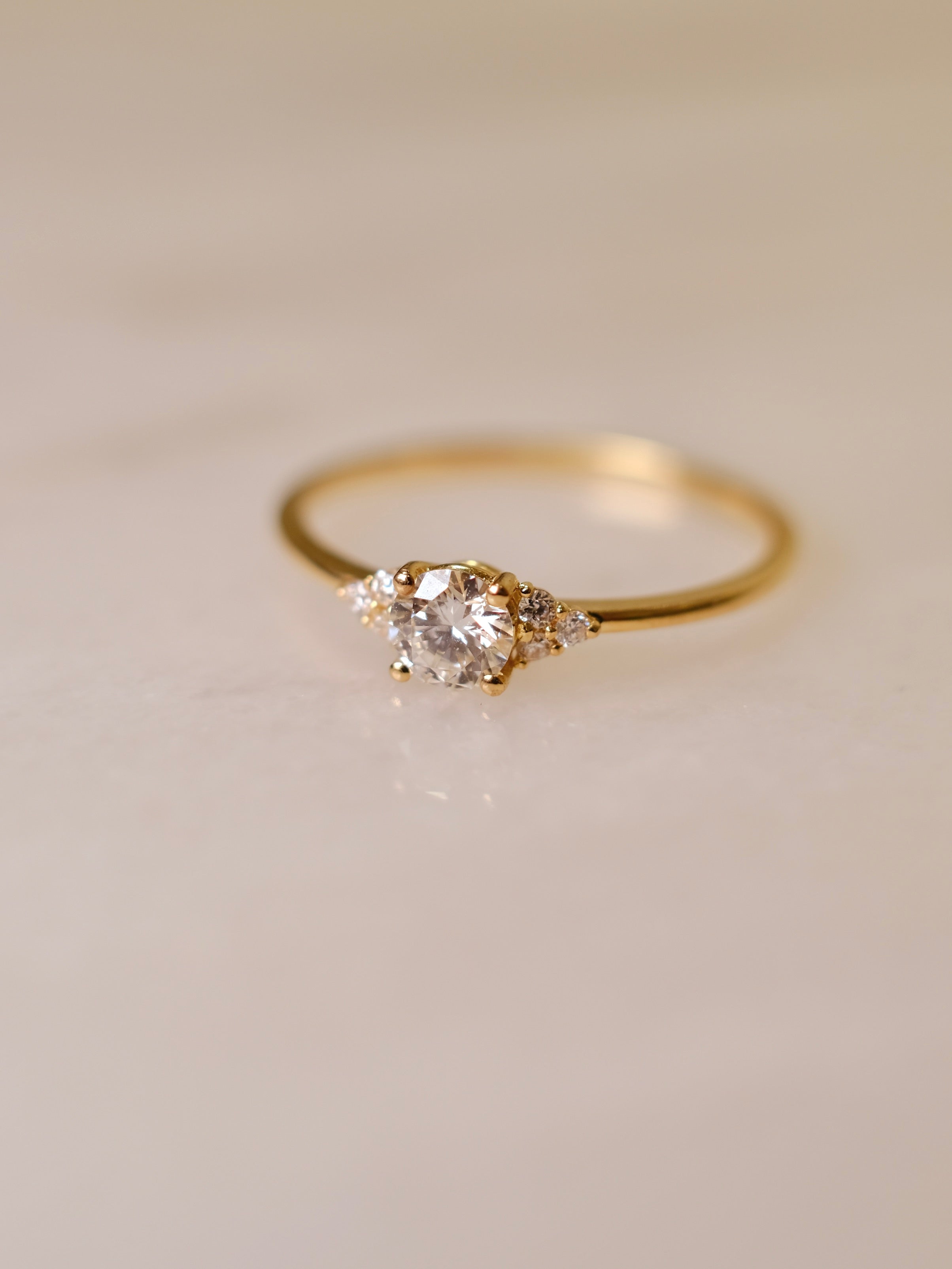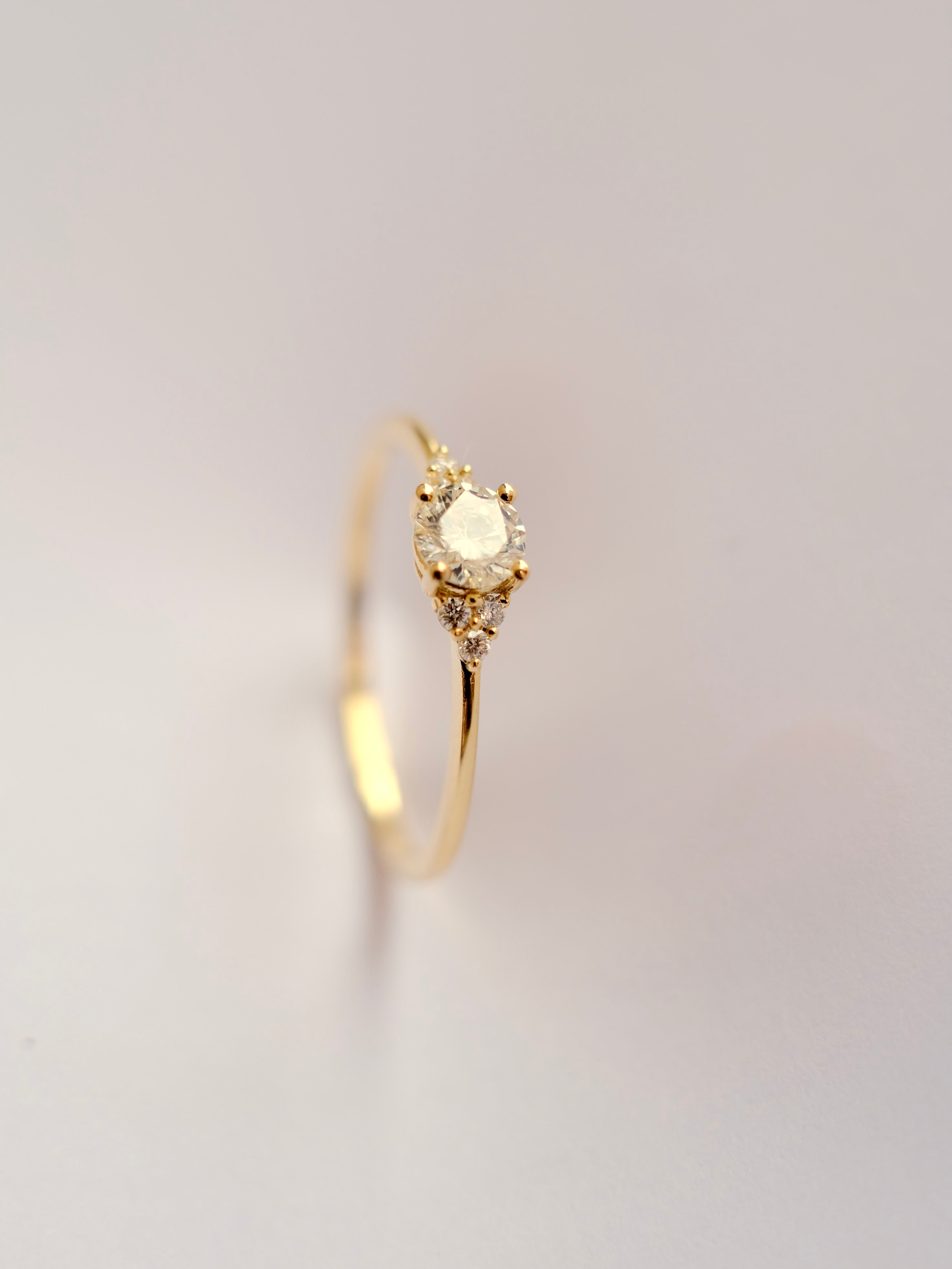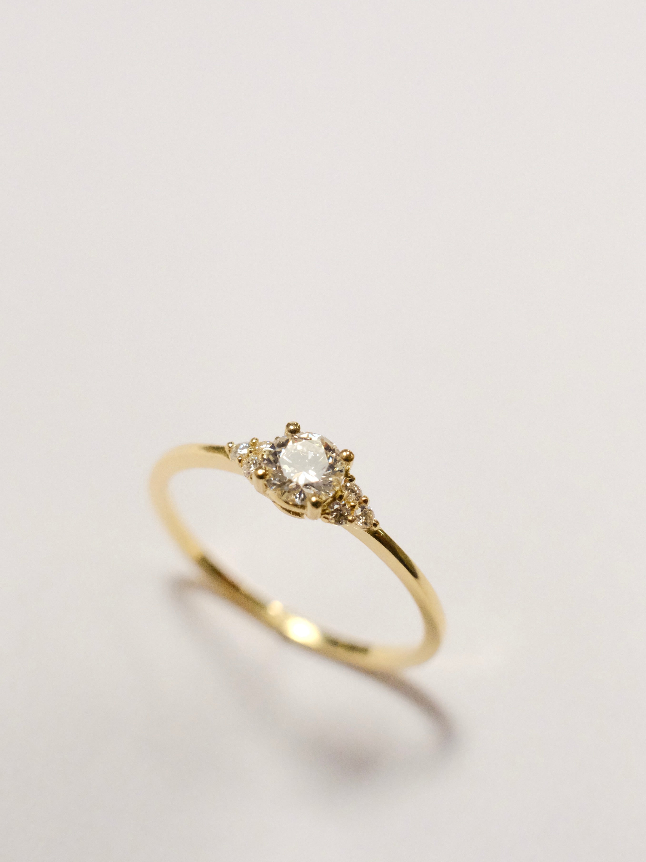 A bespoke Cremilde Bispo Jewellery 18k GOLD Hera Diamonds engagement ring made-to-order with a diamond in the center.